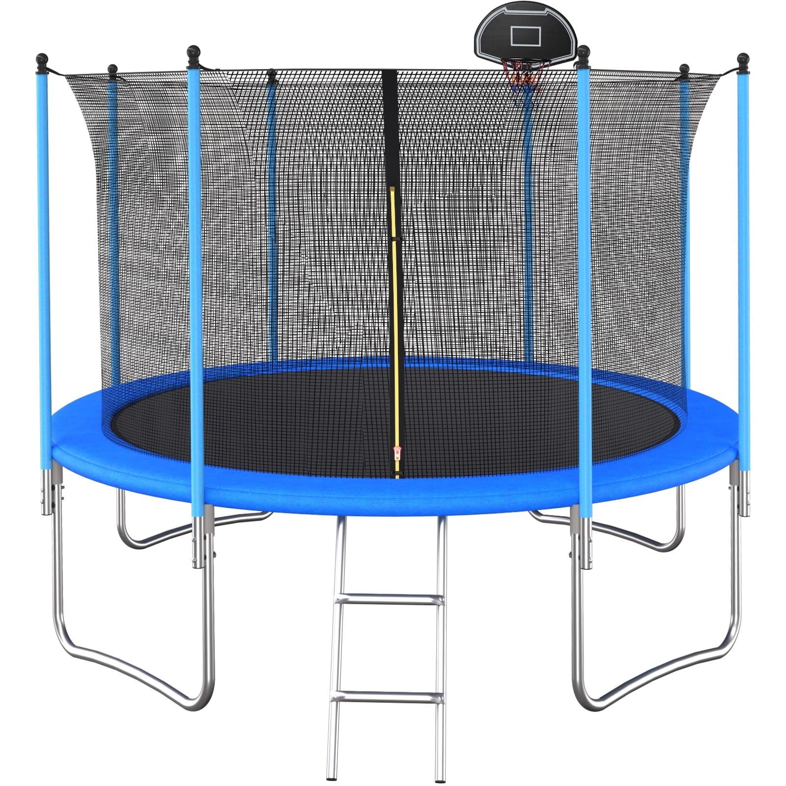 10FT Kids Trampoline with Enclosure and Non-slip Ladder, Backyard Patio Family Outdoor Recreational Trampoline, Including All Accessories