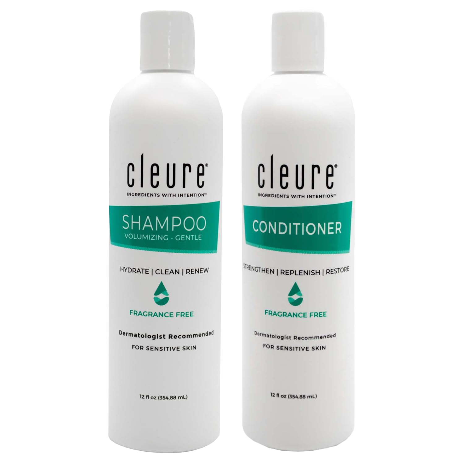 Cleure Hypoallergenic Volumizing Shampoo & Hydrating Conditioner Haircare Set for Sensitive Skin - Fragrance Free, SLS Free & Paraben Free (12 Oz Each, Pack of 2)