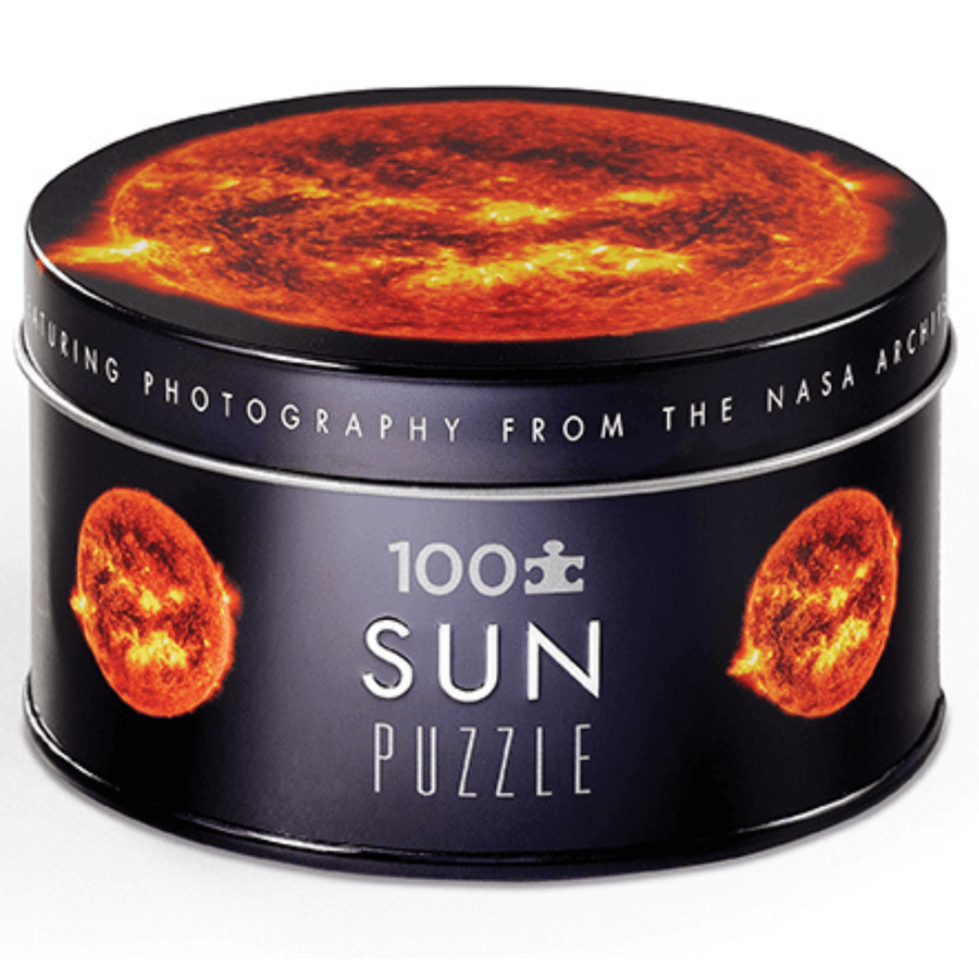 A challenging little puzzle using beautiful NASA images of the wonders of the Solar System. These round intricate puzzles of the Earth, the Moon, the Sun and Jupiter each come in a convenient tin container.