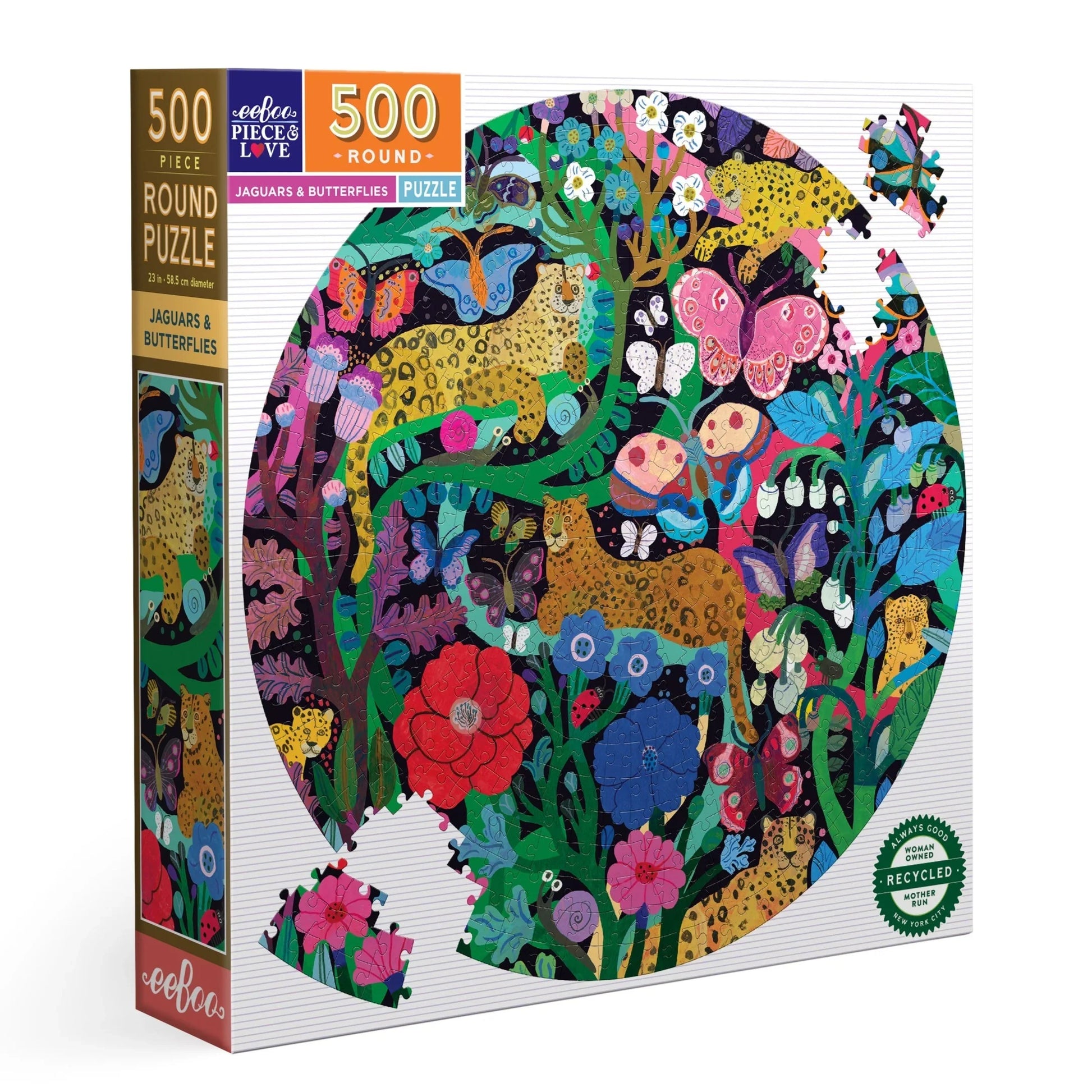Jaguars and Butterflies 500 Piece Round Puzzle