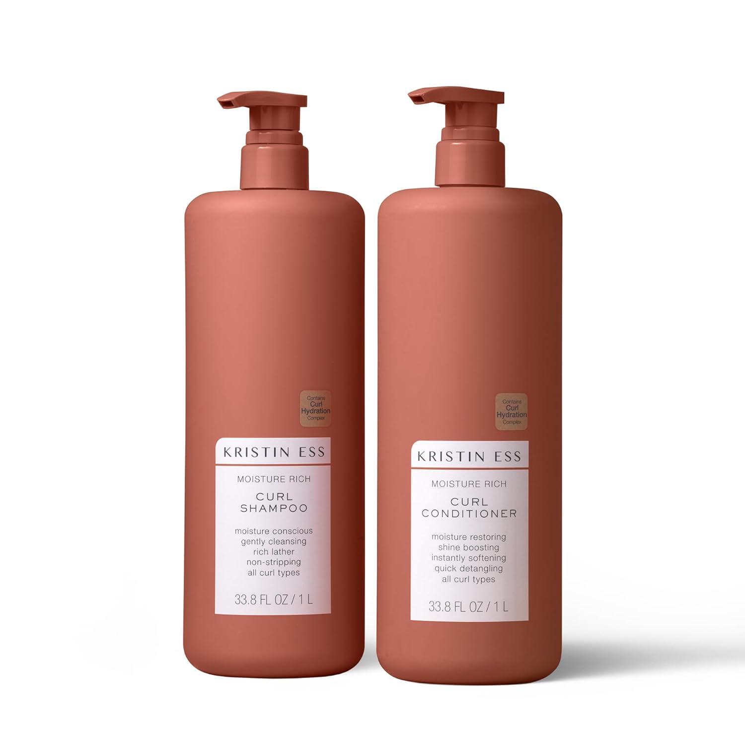 Kristin Ess Hair Curl Shea Butter Shampoo and Conditioner Set for Curly Hair Bounce + Shine - Anti Frizz Moisture Shampoo + Deep Conditioner - Clean + Vegan Curly Hair for All Curls 2A-4C - 1 Liter