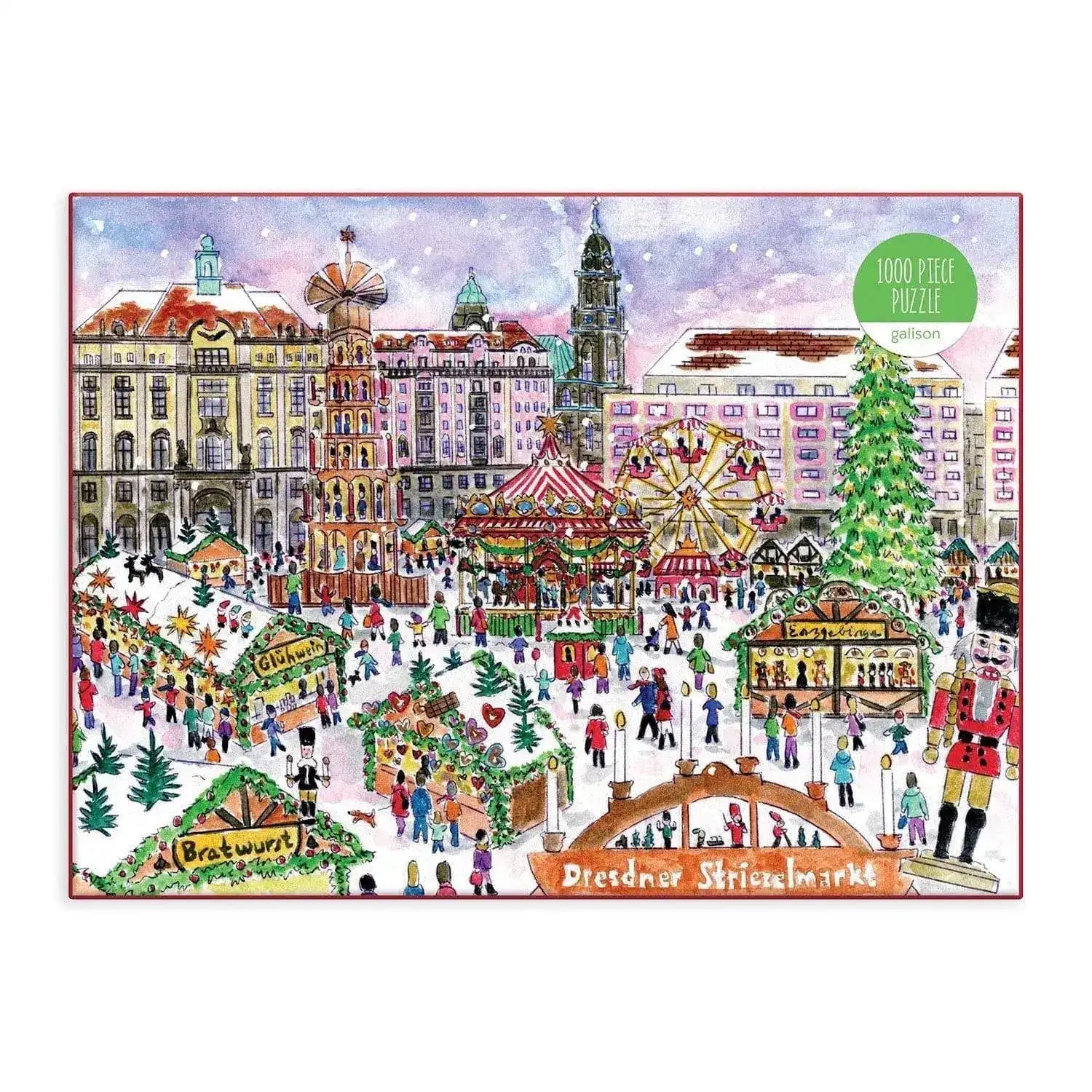 Award-winning illustrator Michael Storrings captures the special essence and magic of cities in different seasons. Christmas in Dresden 1000 Piece Puzzle brings to life the hustle and bustle of a snowy German Christmas in Dresden. These puzzles are packaged in matte-finish sturdy boxes, perfect for gifting, reuse, and storage.