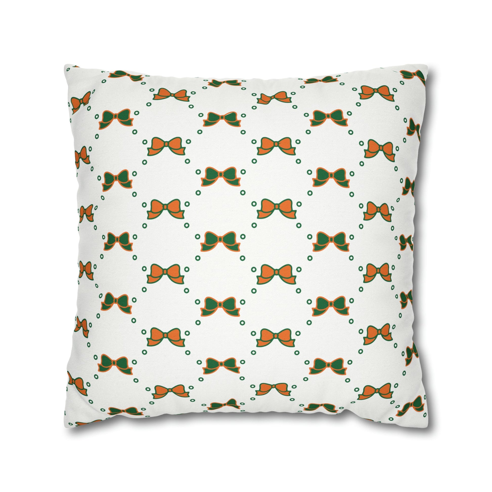 Pretty Little Bow Pillow Cover - Dorm Pillow,Bow Pillow,Bed Party Gift, Acceptance Gift, Camp Gift, Bow Aesthetic, Miami, Orange & Green