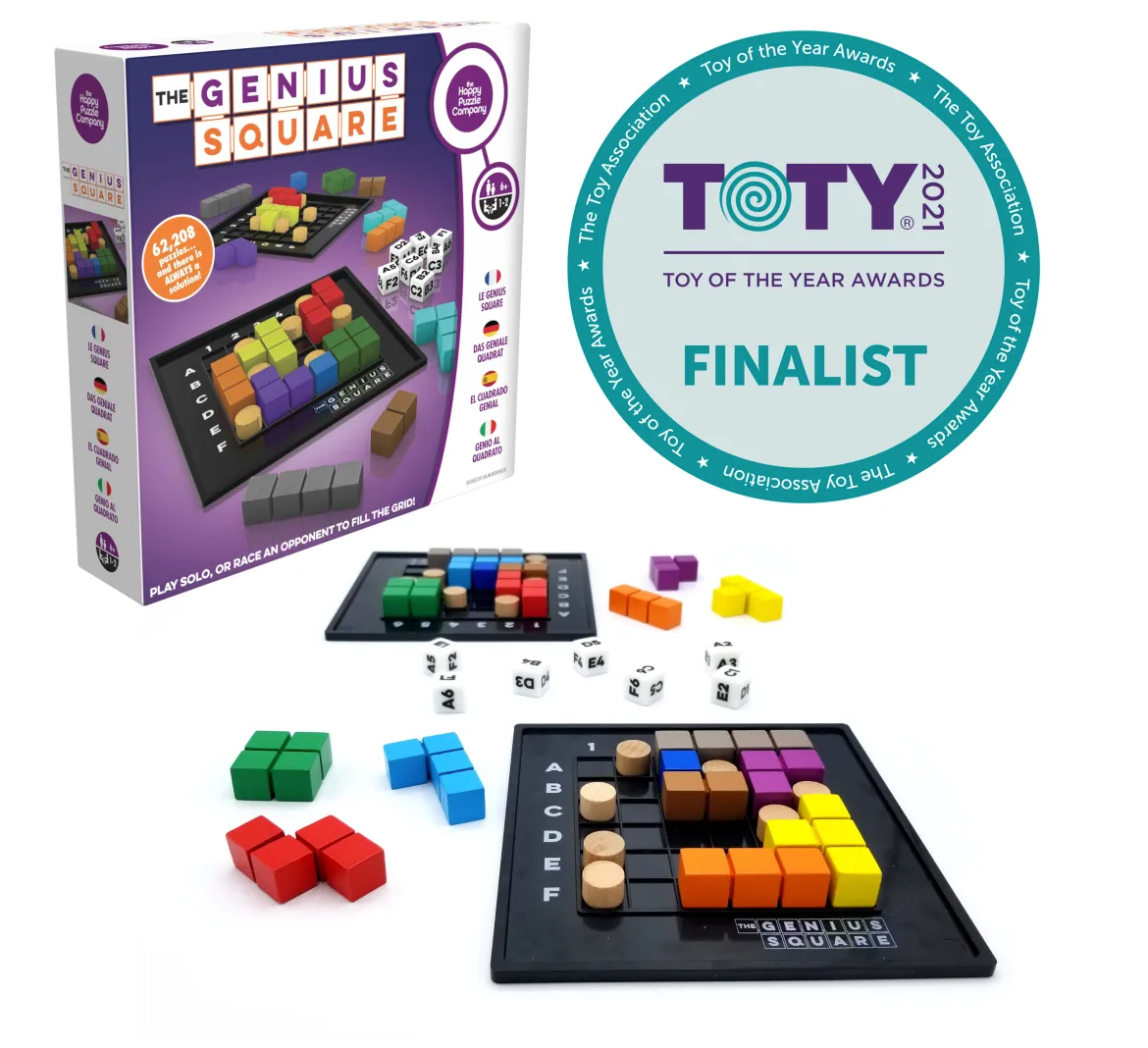 - GAME OF THE YEAR: Happy Puzzle Company 2018/19 Nominee! Well-made table game that includes 2 grids, 7 dice, 2 sets of 7 blockers, and 2 sets of 9 colored shapes. Easy to travel with, easy to teach and learn, and simply enjoy the time! This puzzle game is SIMPLY GENIUS!