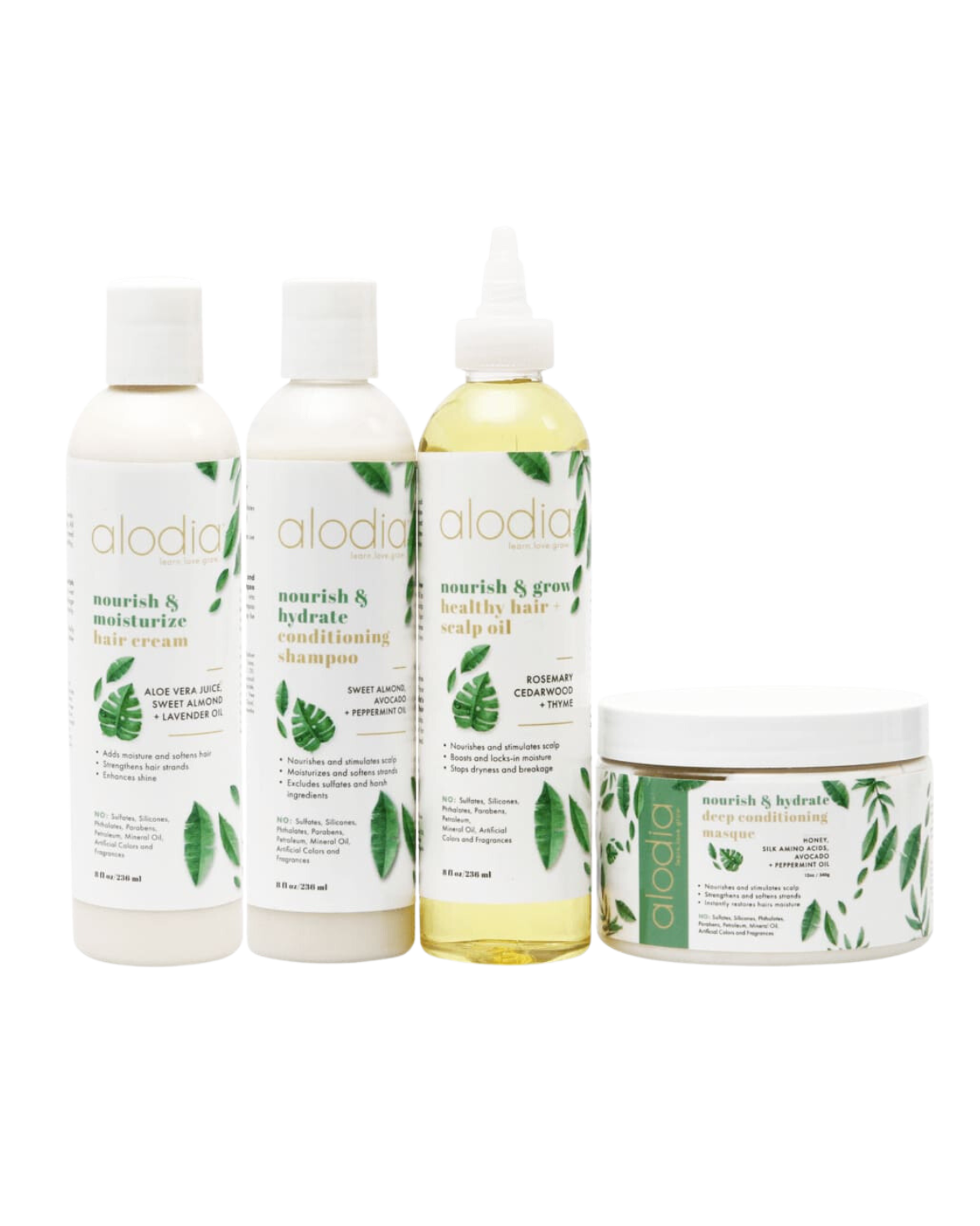 How To Use It: First, cleanse hair and scalp using the Nourish and Hydrate Conditioning Shampoo. Then, follow up with Nourish and Hydrate Deep Conditioning Masque (to be used 1-4 times a month). Rinse and style with Nourish and Moisturize Hair Cream. Finally, use Nourish and Grow Healthy Hair and Scalp Oil to seal strands and ends.